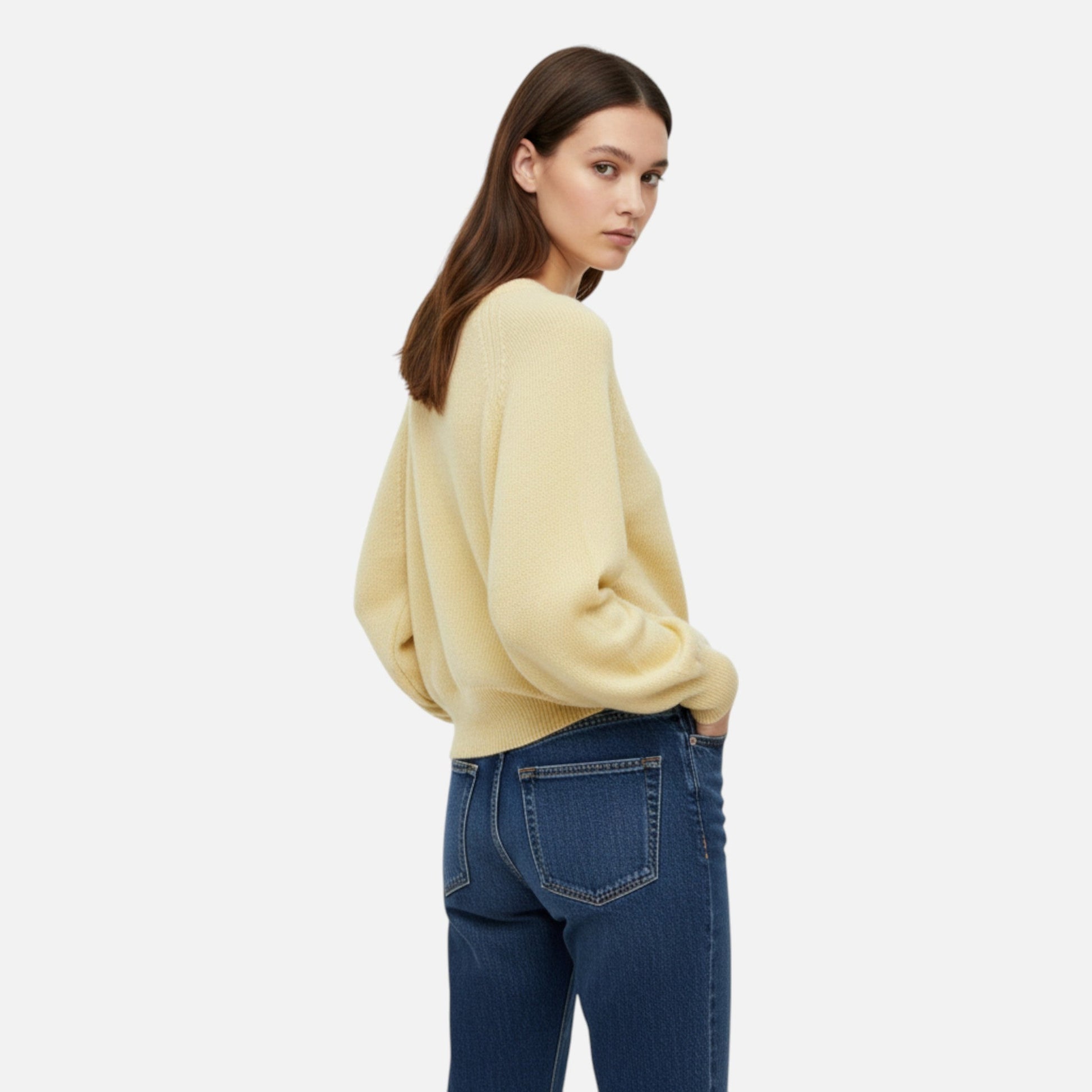 The Old World Crew Neck Sweater combines softness and refined style. Its relaxed fit and wide sleeves create an elegant and modern silhouette, perfect for creating comfortable outfits while maintaining a sophisticated look.